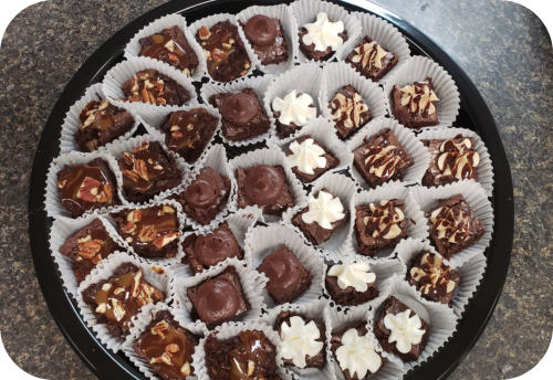 We make fresh baked brownies daily. First come first serve…..
